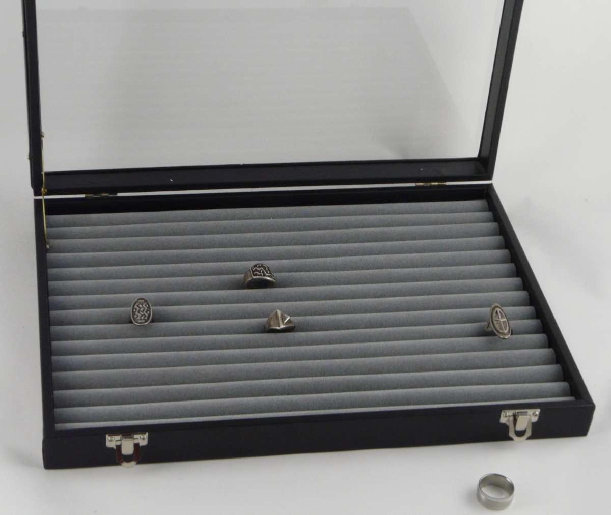 Coffret 26x36 cm, luxe vitré pour bagues.