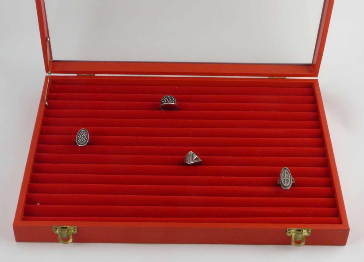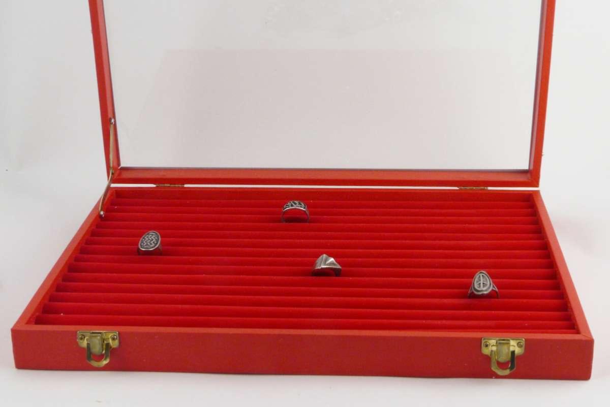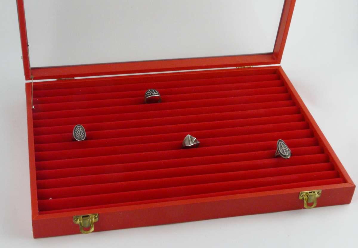 Coffret rouge à rouleaux pour bagues Coffret 26x36 cm à sillons noirs pour bagues Coffret de bagues 25x35 cm intérieur rouleau gris pour bagues